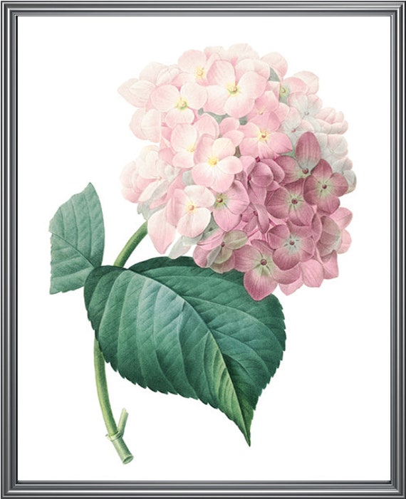 Pink Hydrangea Printable Vintage Flower Illustration Etsy