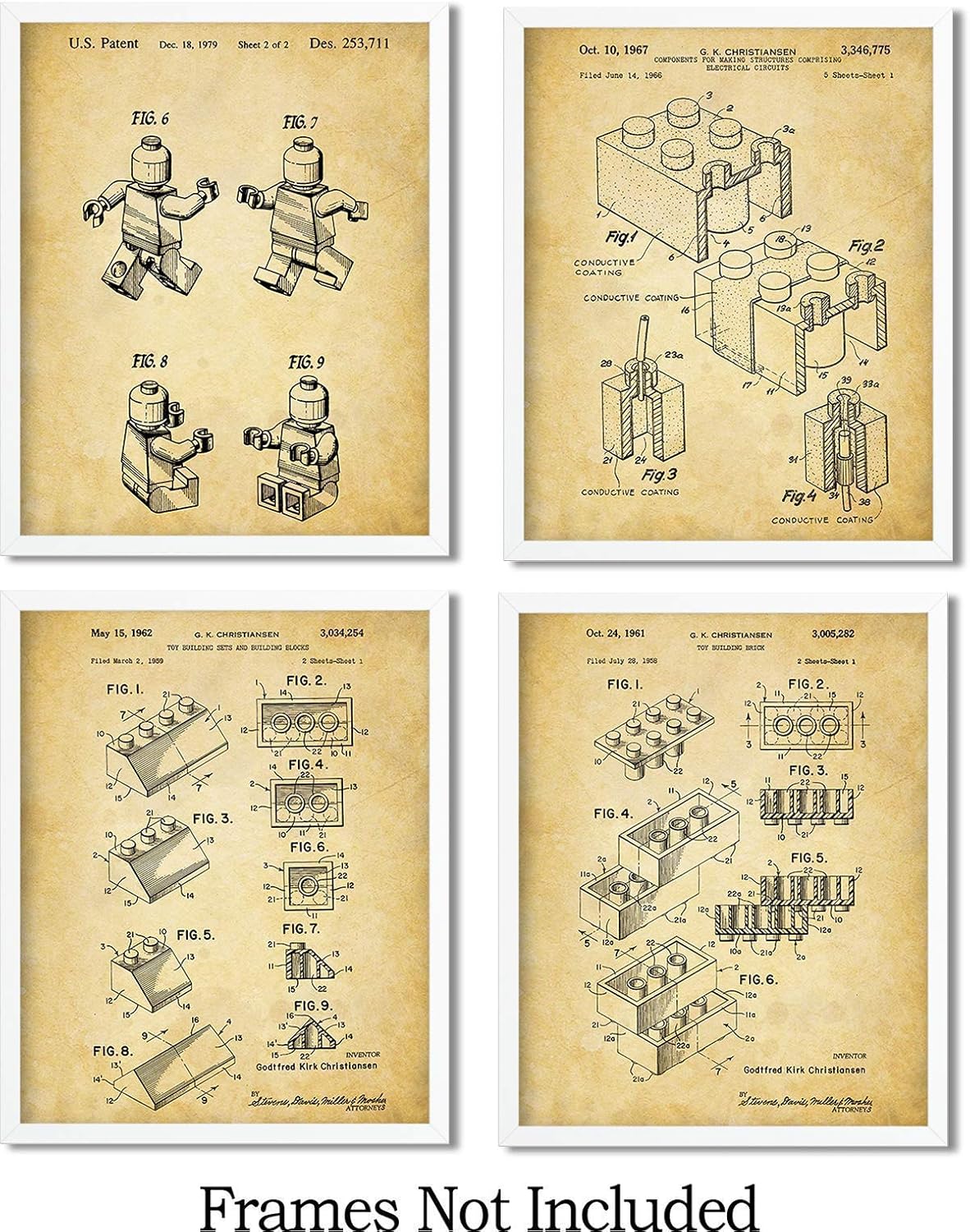 Amazon Com Legos Patent Wall Art Prints Set Of Four 8x10